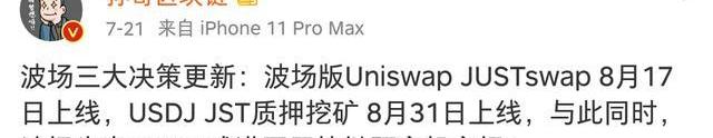 孫宇晨今天上午給出了最新的消息,消息也發到了微博:
