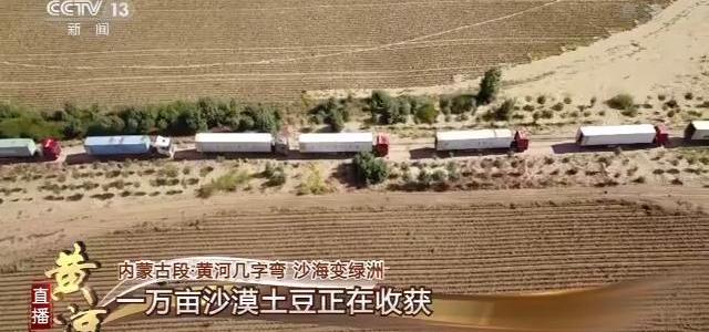 總臺央視記者孫強:我現在就是在庫布齊沙漠的阿木古龍現代農業種植基地,這里種植的一萬畝土豆,現在正在進行著緊張的收獲,我今天就是坐在這樣一輛土豆運輸車里和工人師傅一起來感受豐收的喜悅,一會兒這些收獲的土豆就將被送往全國各地的冷庫了。首先要給大家來介紹一下我現在所在的位置,可能很多人會覺得,你說是沙漠,但是看起來這里和沙漠我們想象當中的樣子,有一些不太一樣,這里是沙漠嗎?在航拍畫面當中,我們能夠看到這里有著一個個褐色的圓形,其實這就是我們的土豆田了,而在這些土豆田的外面就都是金黃色的沙漠,這里其實就是庫布齊沙漠,它位于黃河的南岸,距離最近的黃河不到5公里的距離。