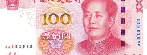 上圖為1999年第五套人民幣100元,正面圖案是毛主席頭像、梅花花卉、國徽,反面是人民大會堂。