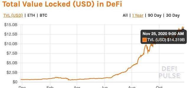 目前DeFi鎖定的總價值超過140億美元,其中5個不同項目的TVL超過10億美元,這是生態系統迅速成熟的標志。