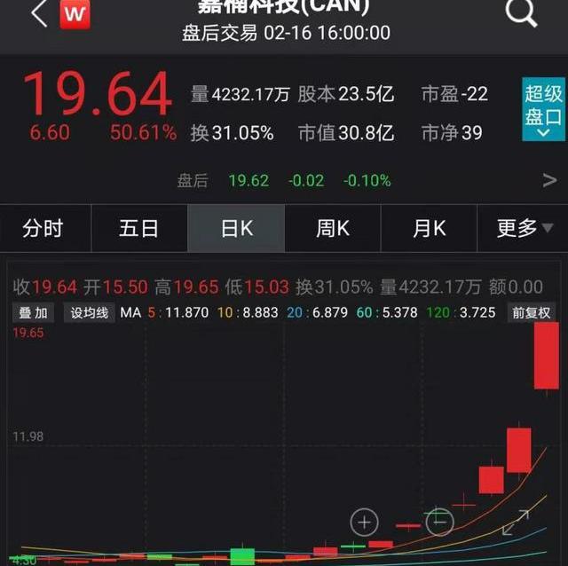 比特幣的如虹漲勢也引發了美股市場區塊鏈板塊的集體躁動。截至當地時間2月16日收盤,中概股嘉楠科技股價大漲50.61%,創歷史新高;2月以來,嘉楠科技實現11連漲,累計漲幅高達330.70%。