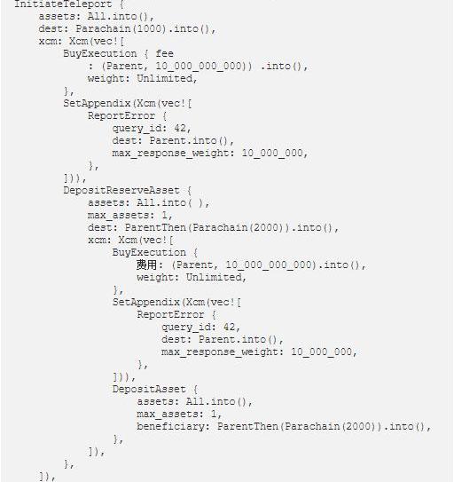 正如你所看到的,唯一的變化是引入了兩條SetAppendix指令,以確保Statemint和平行鏈2000中的錯誤或缺失將報告給中繼鏈。這假設中繼鏈已將自身設置為能夠識別和處理來自Statemint和parchain2000的QueryResponse消息,查詢ID為42,權重限制為1000萬。令人高興的是,這確實是Substrate很好的支持,但現在已經超出了范圍。