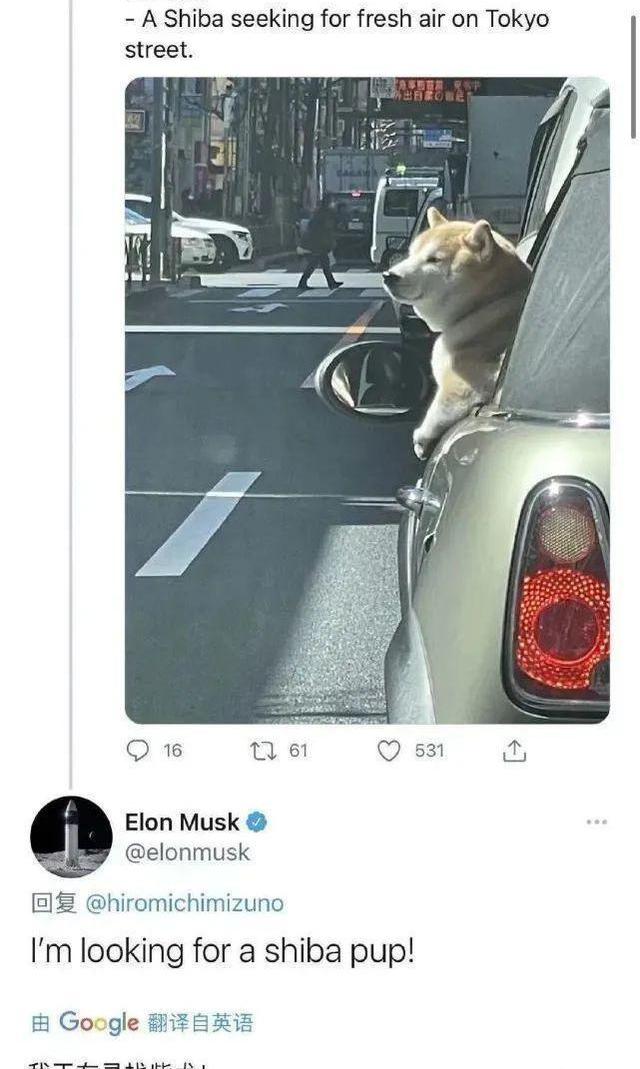 然而柴犬幣的暴漲,背后也有馬斯克的推波助瀾。當地時間7日,特斯拉獨立董事、日本養老基金前首席投資官水野弘道在社交媒體上表示:“投資者可以短線交易柴犬幣,但不要這樣對待自己的柴犬寵物狗。”馬斯克隨即回應:“我正在尋找一只柴犬!”