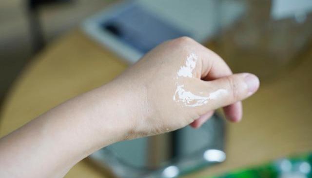 用手給大家試一下,非常好抹開,涂在臉上會有一點溫熱感。▼