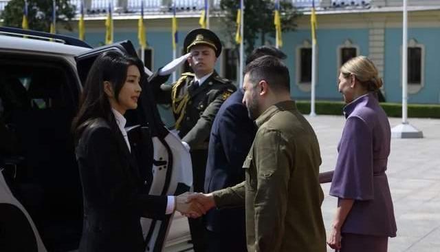 除了外國領導人訪烏的“保留節目”,尹錫悅此行也有一些獨特安排,包括訪問圣索菲亞大教堂。此外,在尹錫悅和澤連斯基會晤時,金建希和澤連斯基的夫人澤連斯卡婭也舉行了會談。金建希從烏克蘭的自然風光談到繪畫,表白道:“包括我在內的許多韓國人都想幫助烏克蘭。”她提及幾天前在立陶宛時應澤連斯卡婭之邀參觀了烏克蘭中心,“中心里展示的烏克蘭難民兒童的畫作讓我非常感動”,并認為可以在韓國展出這些畫,以讓“更多的人像我一樣,被烏克蘭難民的畫所感動,自愿為烏克蘭捐款”。澤連斯卡婭說,這是一個好主意,建議兩國政府加以研究。
