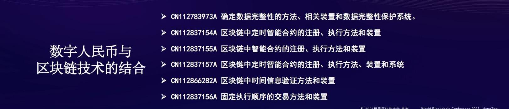 這是關于白皮書當中數字人民幣與區塊鏈技術結合的相關專利,各位領導有興趣可以自行調閱,主要是將區塊鏈技術與智能合約相聯系。