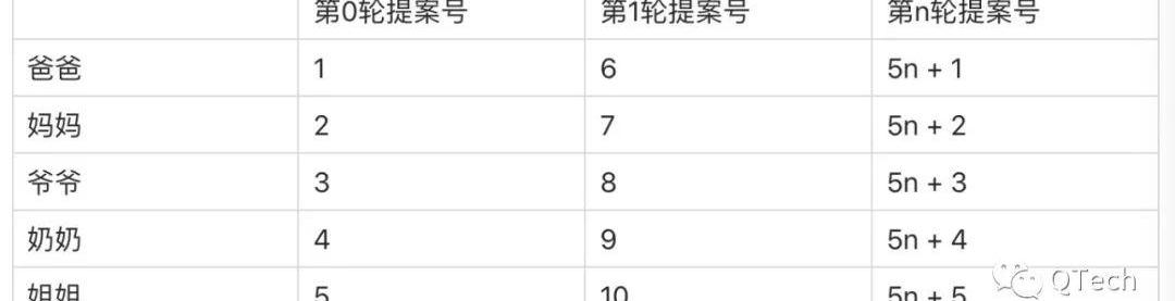 例如,我們可以分別為5個人分配一系列提案號,提案號按如下規則遞增: