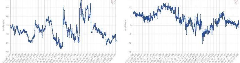 在相同的市場環境面前,以太坊在高階數據上的表現與比特幣完全相反。在幣價上漲后,在值期權的隱含波動率回落,但是仍然高于比特幣20%。與此同時,在偏度數據上,以太坊保持了非常明顯的上升趨勢,其看漲期權溢價在不斷增強。