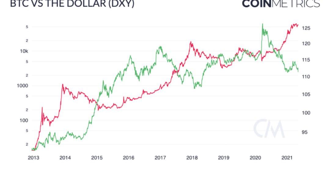 美元在3月期間走強后,在4月期間走弱,并在上周再次下挫。許多投資者現在預計貨幣寬松政策的持續時間將比之前想象的更長,因為有跡象表明經濟仍在復蘇。從歷史上看,BTC在美元走弱的時候會上漲。在短期內,這對BTC來說可能是個好消息。