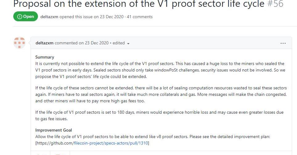 Filecoin官方特地開通了一個FIP提案,該提案主要討論的是,在11月24日之前的扇區是否可以續期。