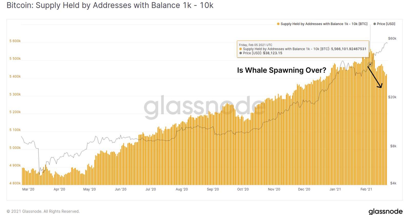 據加密市場數據聚合商Glassnode的最新報告,比特幣鯨魚在2月期間“卸掉”了大量的BTC。