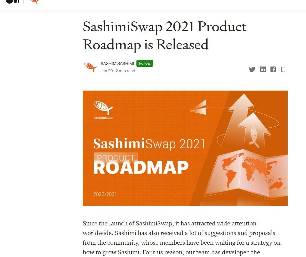 XRP/HKD-3.78%SashimiSwap公布2021年產品路線圖。2月份:停用舊版本,啟用新版本;獲得Maskbook的社交交易權限,Maskbook是MaskNetwork的主要產品,允許Twitter用戶在Twitter上使用SashimiSwap交易ERC20加密資產。3月份:在BSC上部署合約。第二季度:部署SashimiExchange和SashimiFarm后,在HECO部署SashimiLending合約。第三季度:探索Layer2解決方案,優化區塊鏈性能和用戶體驗。