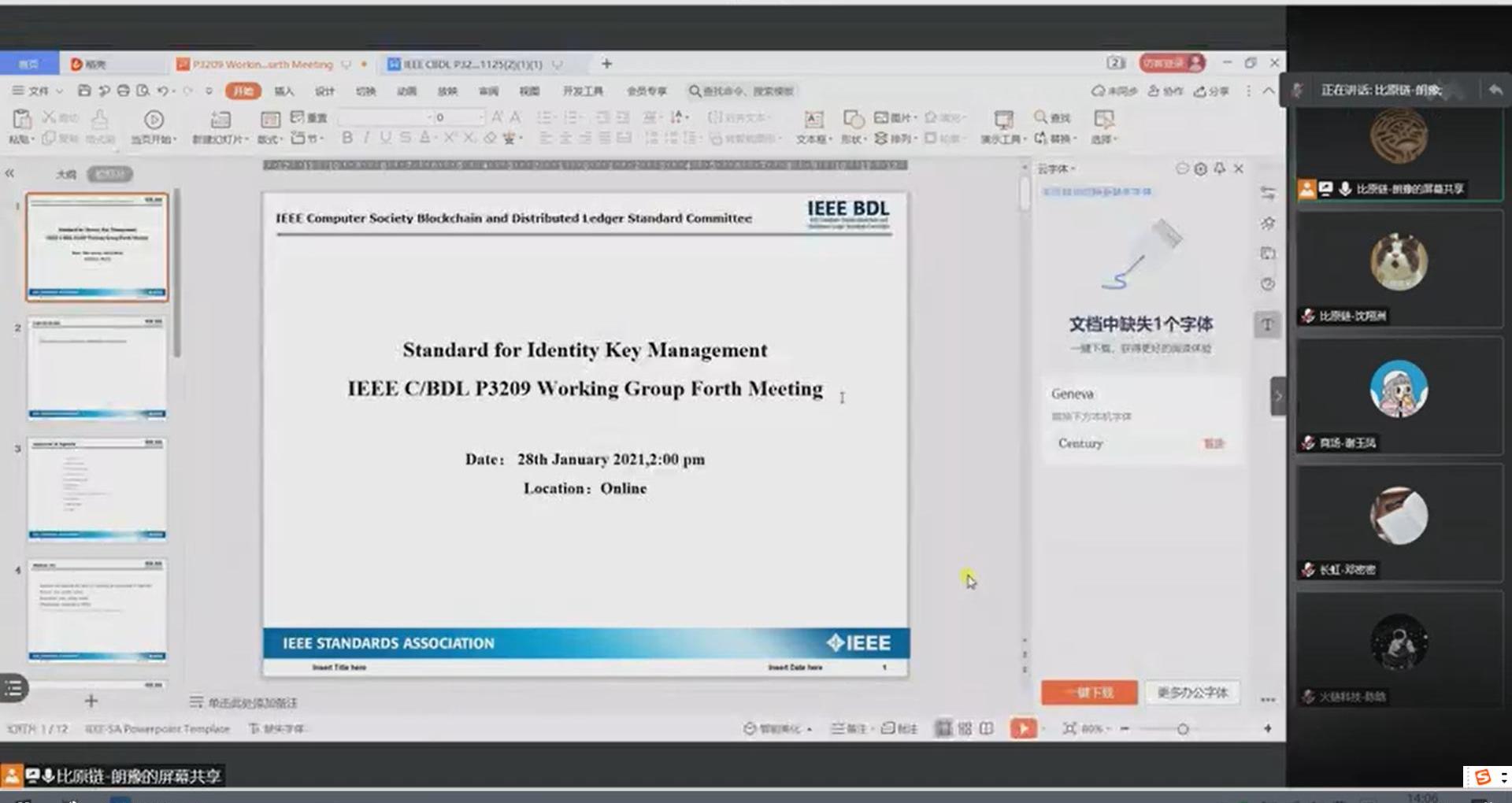 XRP/HKD-2.21%2021.1.28日下午比原鏈團隊在線上召開了IEEEIKM工作組的第四次會議。火鏈科技,四川長虹,麥子錢包,浙商銀行,趣鏈,海爾等成員參與討論。