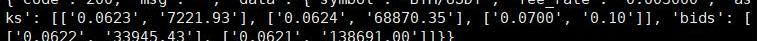 成功取消后再次查看深度,可以發現我們的訂單已經不在asks隊列中