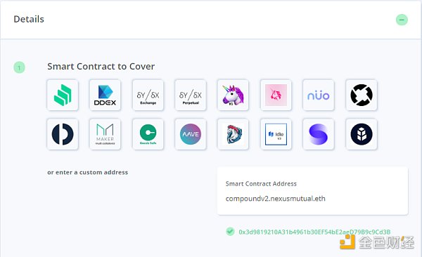 Nexus Mutual提供系統基礎上的保護,這意味著你可以購買Compound或MakerDAO或Uniswap或Curve等產品的保護。如果要與多個協議進行交互,或者使用的是互為基礎的協議,則購買范圍需要完全涵蓋每個協議。