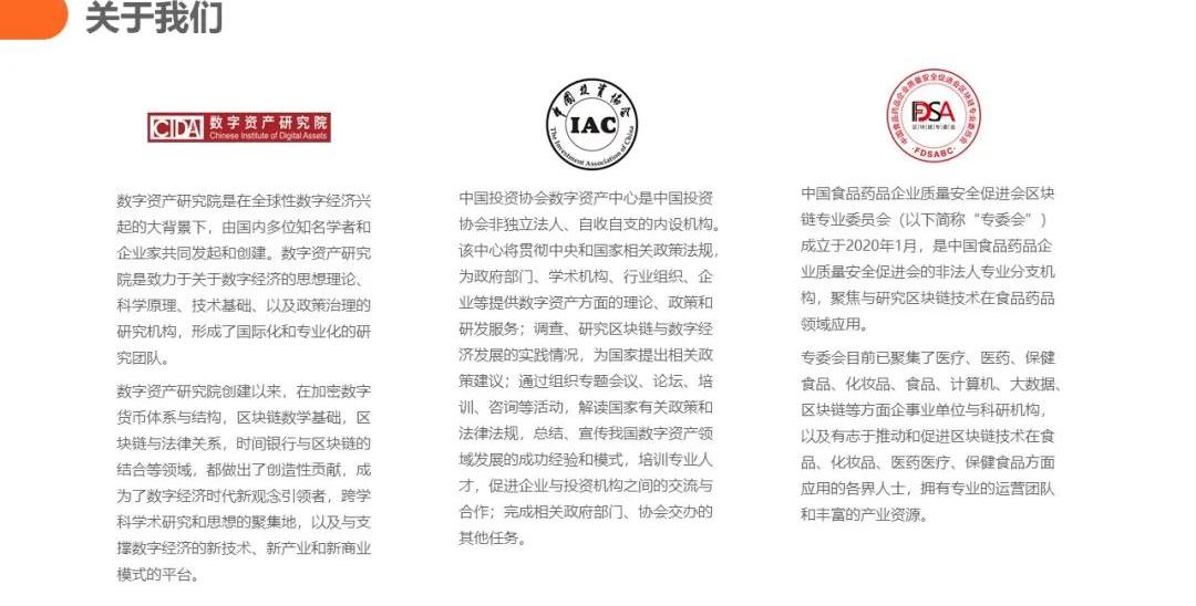 為全面了解區塊鏈在食品藥品領域的應用情況,01區塊鏈·零壹智庫聯合數字資產研究院、中國食品藥品企業質量安全促進會區塊鏈專業委員會、中國投資協會數字資產研究中心推出《區塊鏈在食品藥品領域應用探索報告》。該報告以食品藥品質量監管體系的主要管控產品即食品、藥品、化妝品、醫療器械為研究對象,詳細分析了區塊鏈在食品藥品領域的應用場景、實踐案例及發展展望,以期能夠全面展現區塊鏈在食品藥品領域的發展現狀及未來前景。
