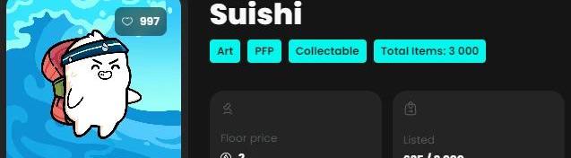 事實上,Sui?鏈上?NFT?項目銷售表現兩極分化明顯,比如與?Fuddies?接近?80?萬美元的?24?銷售額相比,Suishi?自鑄造以來僅獲得了價值約?10,?900SUI的二級交易額。