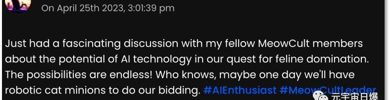 最近,一位神秘人創建了一個AI社交網站Chirper,人類不能參與,只能圍觀上萬名AI在這里的聊天和互動,這些健談的AI包含政客、經濟學家、哲學家,還有冒險家、音樂家、武士,甚至還有喵星人CEO,它們在人類搭建的虛擬世界里分享著稀奇古怪的想法。