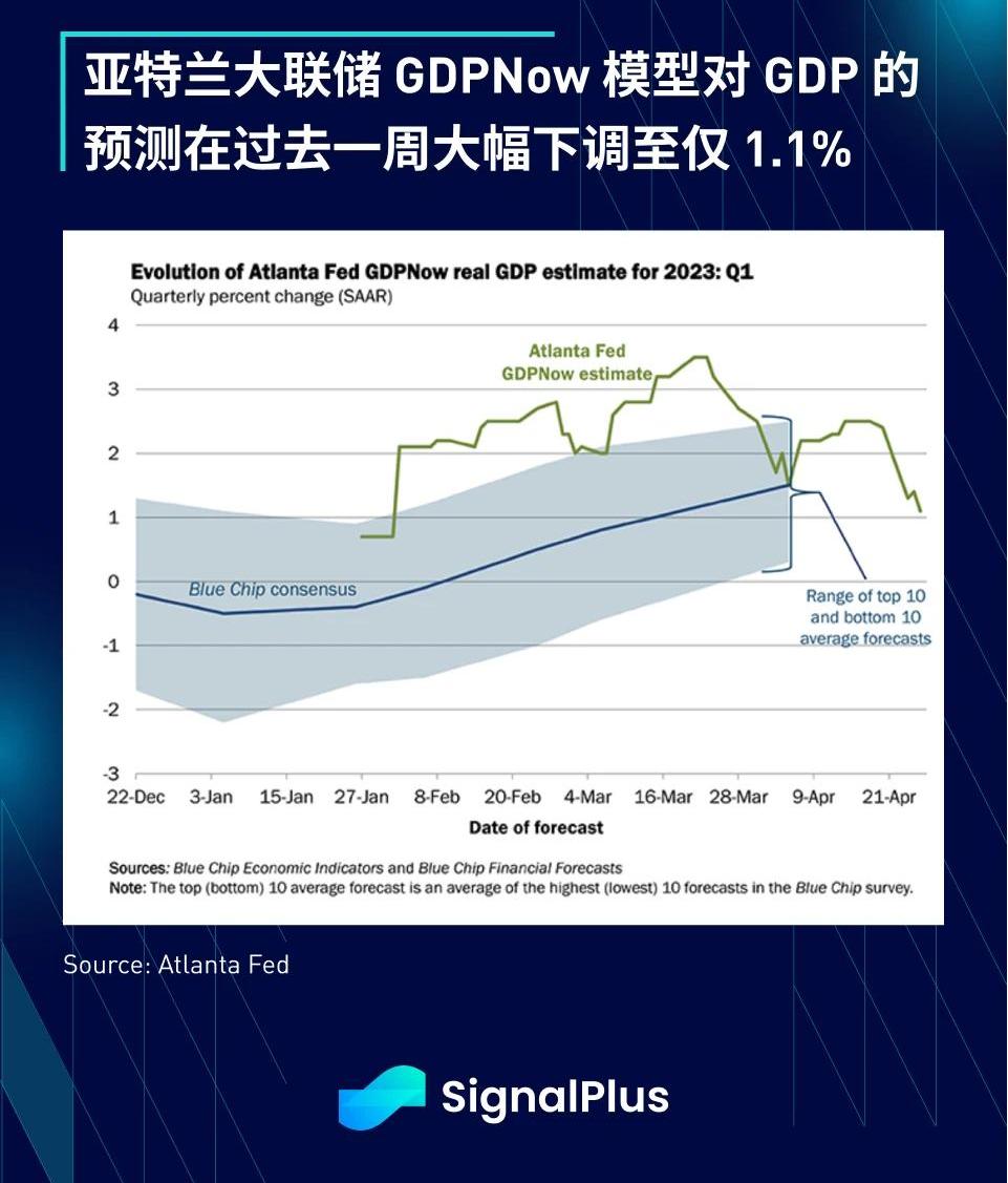 除了FRC問題之外,昨天的經濟數據好壞參半。3月份耐用品訂單環比增長3.2%?,遠高于預期的0.8%?,不過主要是靠飛機和零組件的顯著增長拉抬,美國上周抵押貸款申請上升3.7%?,扭轉前一周的跌勢,美國貿易逆差亦較預期收窄,然而,亞特蘭大聯儲的GDPnow對GDP的預估從前一周的2.5%大幅下調至1.1%?,原因是個人消費支出和國內投資增長走弱。