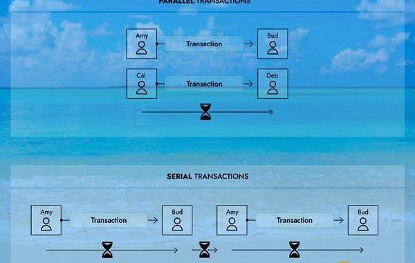 Econia的關鍵技術之一是其超并行化的鏈上訂單簿技術。在并行事務系統中,不同的事務可以同時執行,無需等待前一個事務完成,而在串行系統則按順序進行。