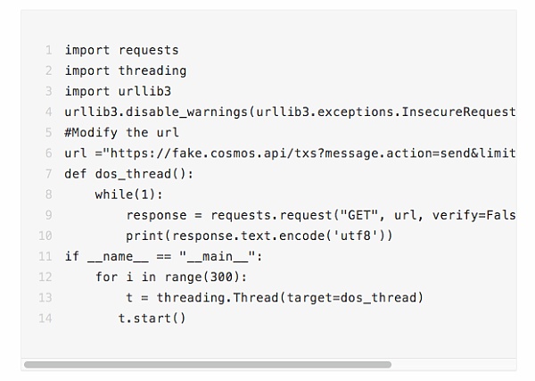 這是一個示例腳本,用于測試Cosmos節點是否容易受到DOS攻擊。通過修改“url”變量可以測試不同的應用程序。