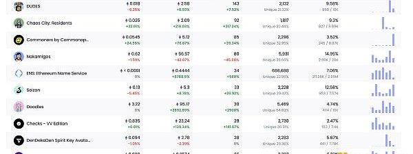 24小時NFT交易量、交易量前十項目數據來源:Coinmarketcap