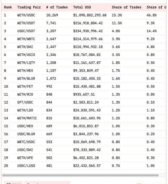 熱度上升較高的代幣:GNS、DBX、USDC、DAI;