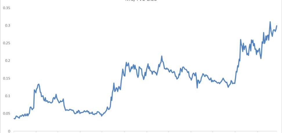 Lido估值處于歷史高位,目前在0.2到0.3之間震蕩。