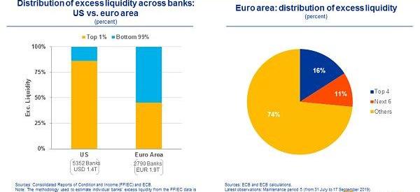 圖:美國金融系統中超額準備金的持有是高度集中的。根據美國聯邦存款保險公司的數據,?86?%的超額準備金僅由?1?%的美國銀行持有。僅四家銀行就占美國超額準備金總額的?40?%。