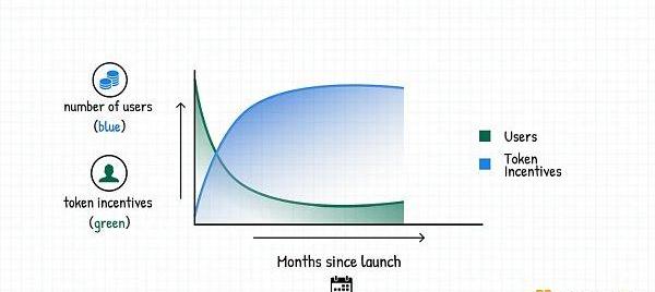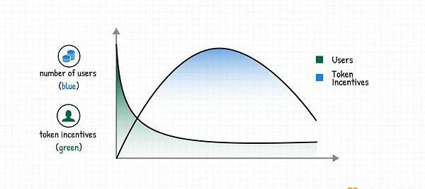 無論如何,在過去,用戶放棄發行代幣地項目的歷史趨勢是存在的,這個陷阱來自于這樣一個事實,即創始人認為通過代幣激勵獲得的用戶具有粘性。在理想條件下,代幣獎勵與產品用戶之間的圖表應該如下圖所示: