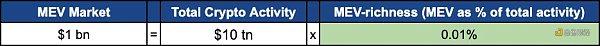 暴露的MEV機會占總活動的一定百分比。為簡單起見,讓我們假設我們對總crypto活動和MEV分別有完美的定義和度量。然后,我們可以準確定義活動暴露的MEV平均值。