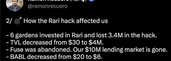 事件起因:因Rari/FEI黑客攻擊造成了重大損失。