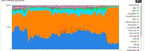 牛市結束后,流動性不足的市場環境為Sudoswap和MagicEden等新興的NFT市場創造了條件,它們推出零版稅政策測試市場反應。單是Blur近幾個月的崛起就加速了對現行NFT版稅市場標準的摒棄。