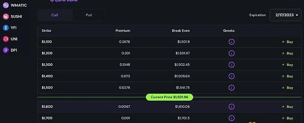 期權:ETH、MATIC、SUSHI、YFI、UNI、DPI