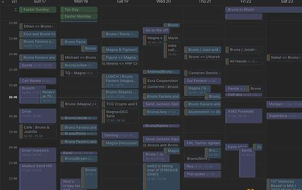 我們最近一輪融資的參投者有120人,所以我估計,僅僅為了種子輪,我們已經和300多位投資者進行過交談。那個月每一周的日程表都像下圖這樣。