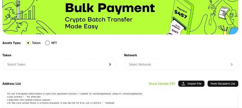 BulkPayment批量支付:可以一鍵發送Token或NFT等,現已支持超50個區塊鏈和逾800種加密資產,可用于自動發薪、DAO費用管理等多個場景;