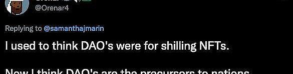 我曾經認為DAO是為了推銷NFT的噱頭,但現在我認為DAO是“國家”的前身。