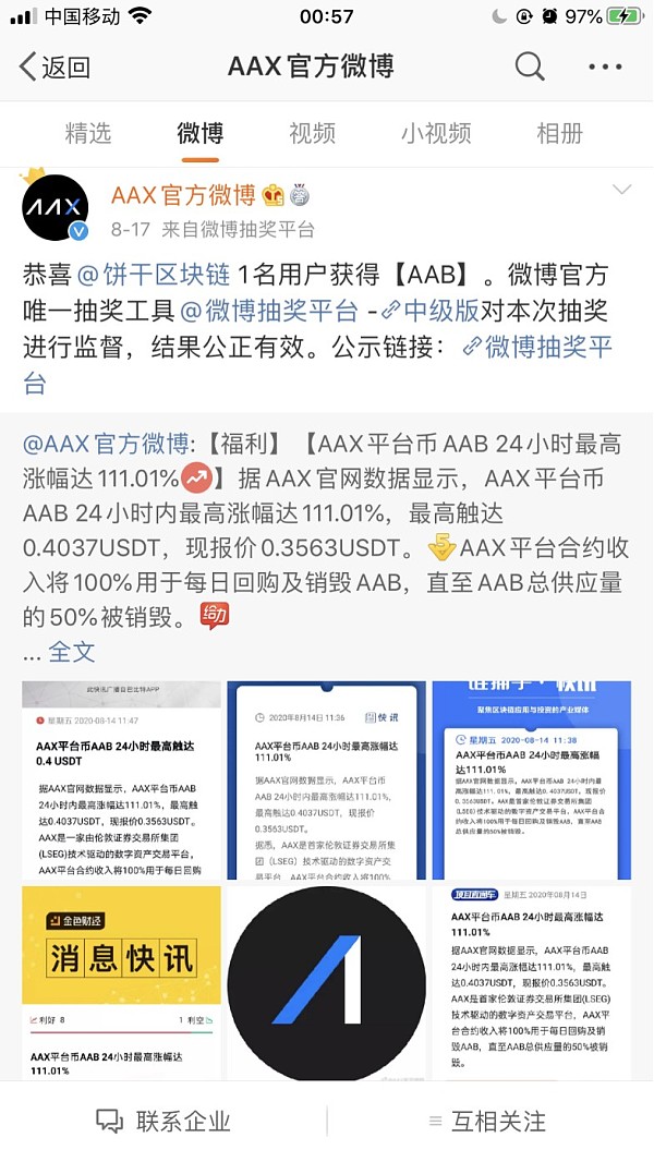 8月19日,AAX交易所開啟了第一輪《夏日閃購活動 》,大致意思是,在19日晚上8點整開始用USDT購買平臺幣AAB,就自動獲取了活動參與資格,從這些人中選取250個人免單,就是給你賬號返回等值的USDT。白嫖,爽不爽。