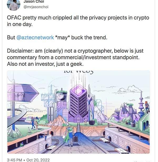 OFAC最近對隱私項目造成了很大的破壞。很多crypto原住民對此非常關注。而Aztec帶來了一線希望。