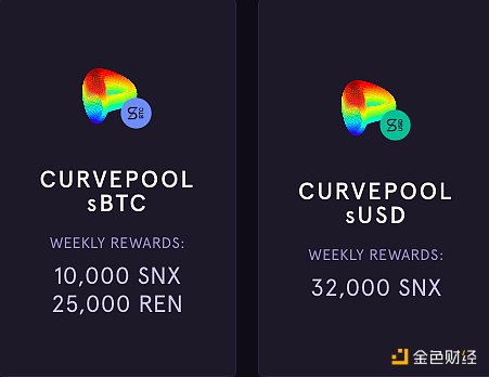 sUSD池中的流動性提供者從交易費中收取費用,但通過在Synthetix上使用其LP代幣,他們有權每周獲得32000枚SNX。sBTC池包括sBTC,RenBTC和WBTC三項資產,向持有LP代幣的人每周獎勵10000枚SNX和25000枚REN。