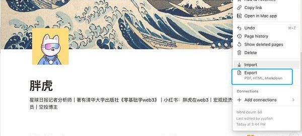 ?1.2從notionexport功能導出我們準備好的頁面,由于IPFS對于靜態網頁支持的能力有限,暫時只能選擇單頁面導出。。