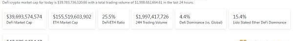 1、DeFi代幣總市值:396.9億美元