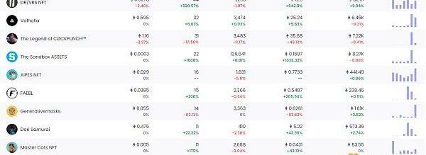 24小時NFT交易量、交易量前十項目數據來源:Coinmarketcap