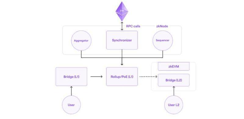 PolygonzkEVMRollup的關鍵組件為:PoE共識算法,zkNode,zkProver,STARK與SNARK的ProofBuilder,Rollup跨鏈橋。