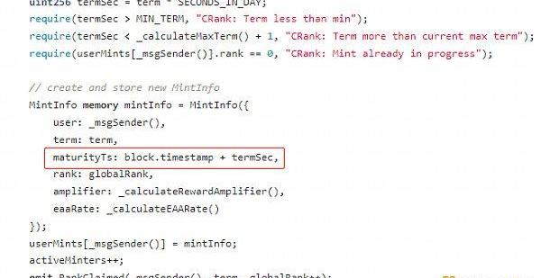 ?第三步,接下來子合約fallback()函數去向Xen合約發起鑄幣請求,如下函數,claimRank()函數傳入一個時間期限進行鑄幣,鑄幣條件是只用支付調用gas費,并無其他成本,并且claimMintRewardAndShare()函數為提取函數,該函數只判斷是否達到時間期限,便可無條件提取到任何非零地址。但在此次調用過程中,交易發起者為FTX熱錢包地址,所以整個調用過程的gas都是由FTX熱錢包地址所支付,而Xen鑄幣地址為攻擊者地址。