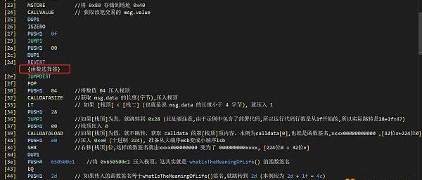 慢著,題目后面還有個小小的附加要求:“所部署的合約大小不超過10個操作碼”。好吧,這個要求的確夠“小”,要知道連合約頭部的“函數選擇器”都不止10個操作碼好吧?可是“函數選擇器”是什么,為什么會出現在合約里面呢?帶著你的疑問,繼續向下看。