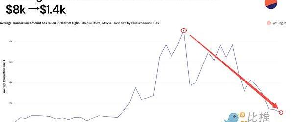 3、DEX的平均交易規模從8000美金下降到1400美金。