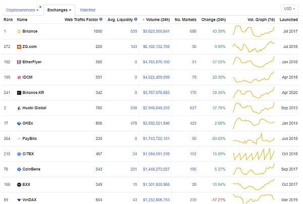 OKex和huobi兩家交易所(國內熟悉的)交易金額統計與coingecko相差不多,約為30億美金;