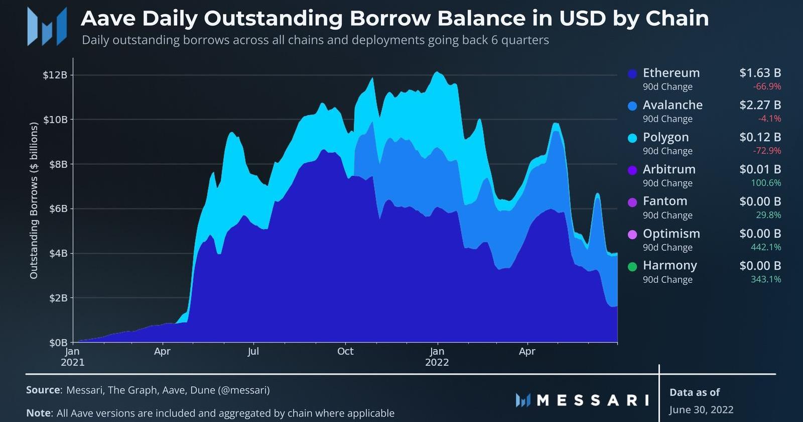 因Celsius還款和Avalanche上的激勵措施,Aave在Avalanche上未償貸款余額比以太坊上高出近40%。然而,就像Aave的Avalanche收入一樣,這種趨勢是不可持續的,也不會成為長期的增長來源。?