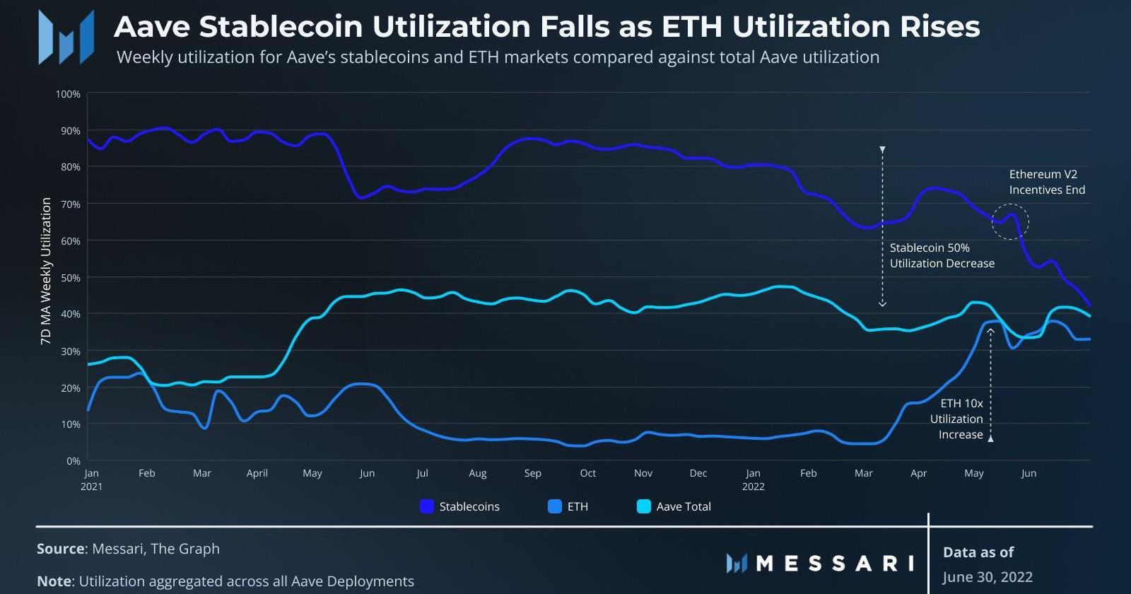 雖然穩定幣達到了過去6個季度的最低利用率,但對以太坊貸款的需求保持住了Aave的整體利用率。